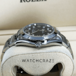 A stainless steel Oyster bracelet with Rolex’s Easylink extension system emphasises comfort and style. This feature makes wrist adjustments easy.
