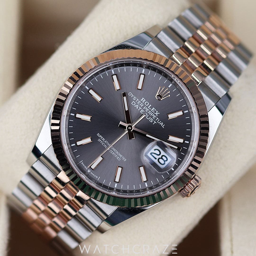 Be the first to review “ROLEX DATEJUST SLATE DIAL 36MM 126231 TWO TONE ROSE GOLD STAINLESS STEEL” Cancel reply