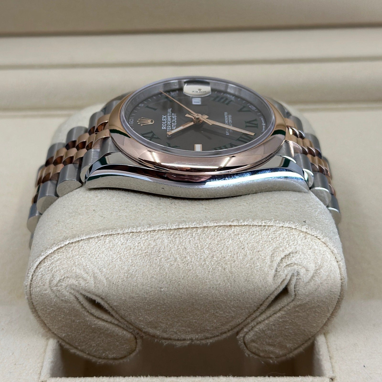 The 2022 Rolex Datejust Two-Tone Wimbledon Dial 36mm 126201 is an elegant timepiece that also features cutting-edge functionality. Its durable and beautiful Oystersteel and Everose gold case measures in at 36 millimetres.