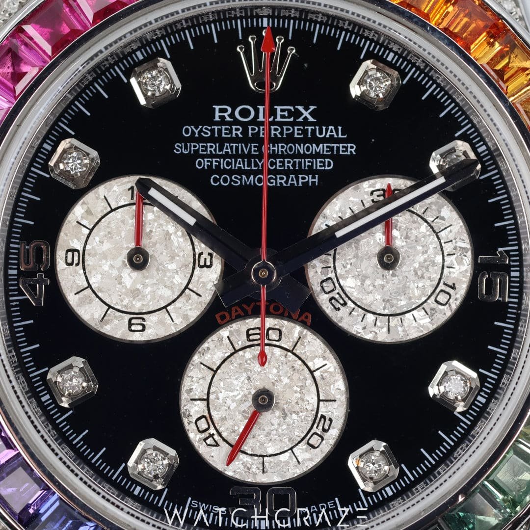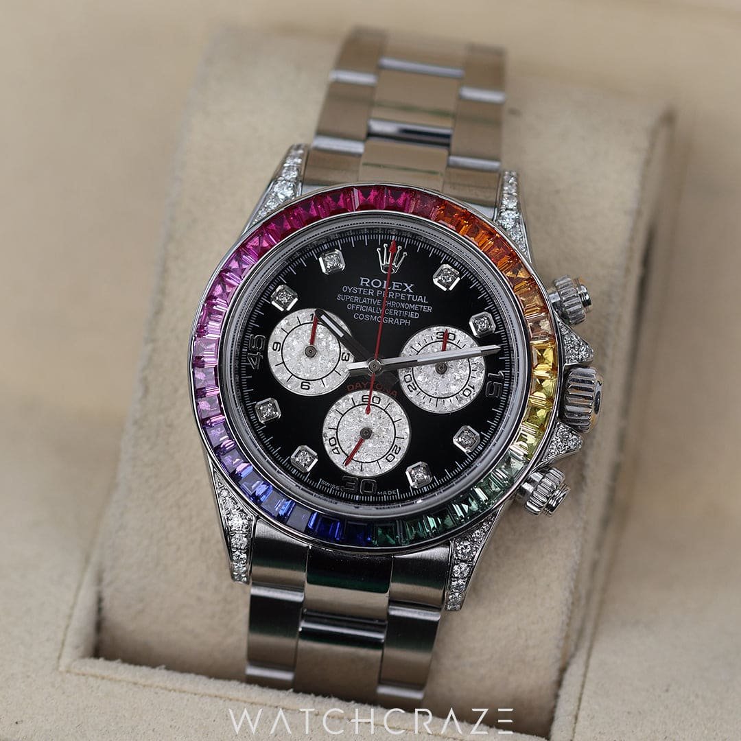 This Cosmograph Daytona is a beacon for the bold, a signature for the sublime—it doesn’t just mark time, it adorns it. With a watch like this, you don’t measure moments; you live them, each one a vibrant testament to a life less ordinary. In the theater of time, be the protagonist with this enchanting masterpiece that declares every second a spectacle.